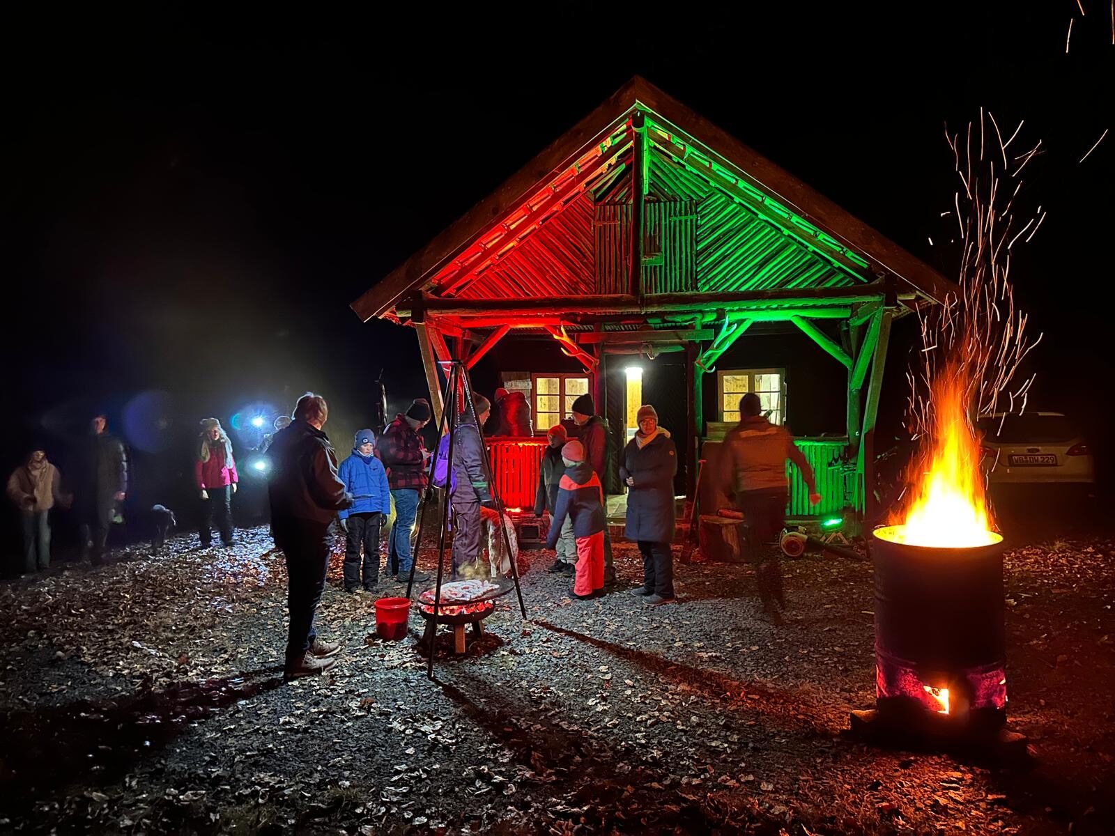 Am Tonnenfeuer wurde gelacht, erzählt und aufgewärmt. Die Zeit verging wie von selbst, getragen von guten Gesprächen und dieser besonderen Stimmung, die entsteht, wenn man gemeinsam unterwegs war und den Abend in Ruhe ausklingen lässt. Später machte sich die Gruppe nach und nach wieder auf den Rückweg. Sabine Köhler-Keim und Björn Diebel boten einen Fahrdienst zurück nach Neukirchen an, der dankbar angenommen wurde. Einige ließen es sich dennoch nicht nehmen, den Rückweg zu Fuß anzutreten, diesmal allerdings über eine andere Strecke. Die umgepflügte Wiese musste man schließlich nicht zweimal erleben.